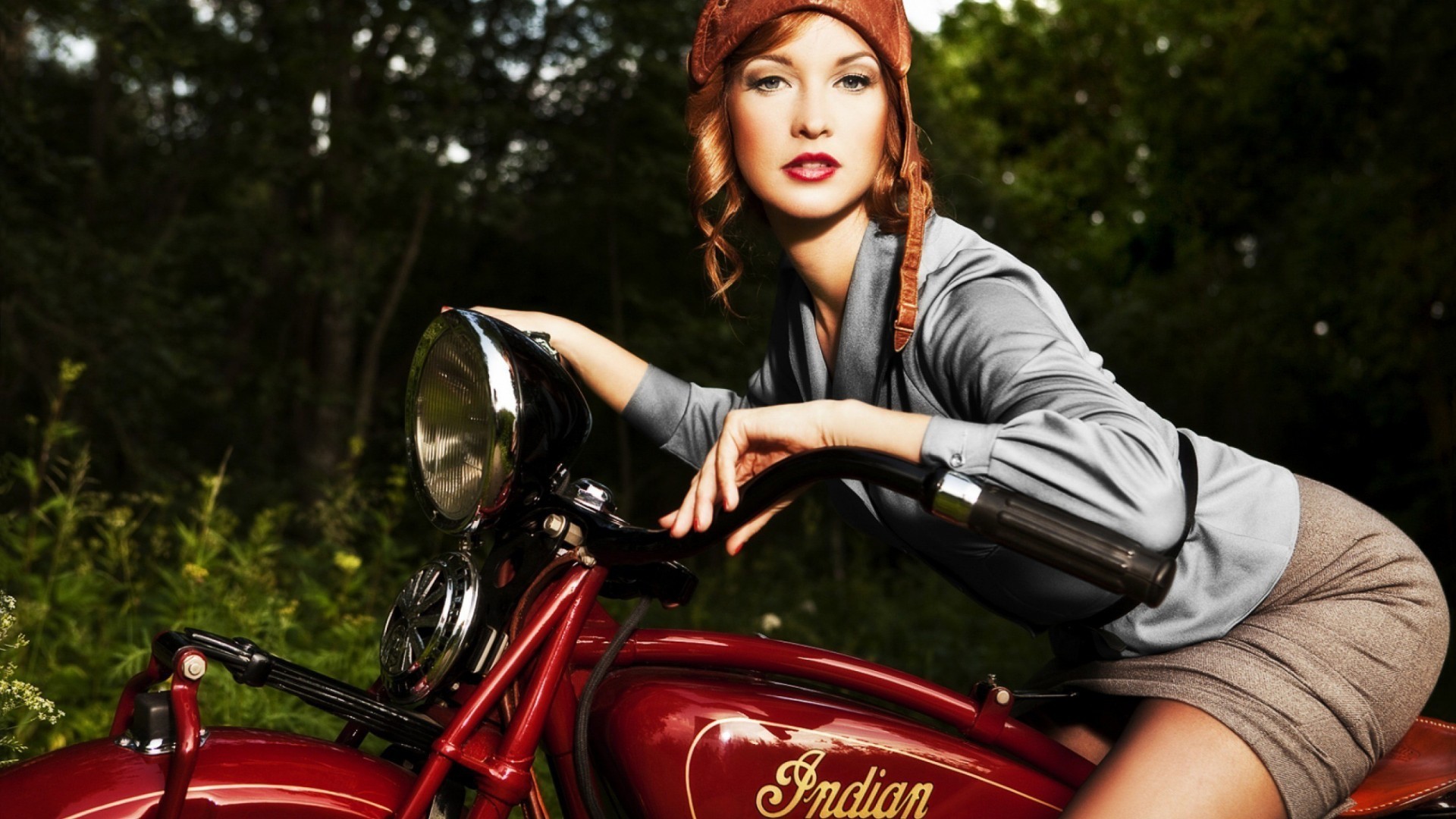 Ragazza in casco su una motocicletta rossa