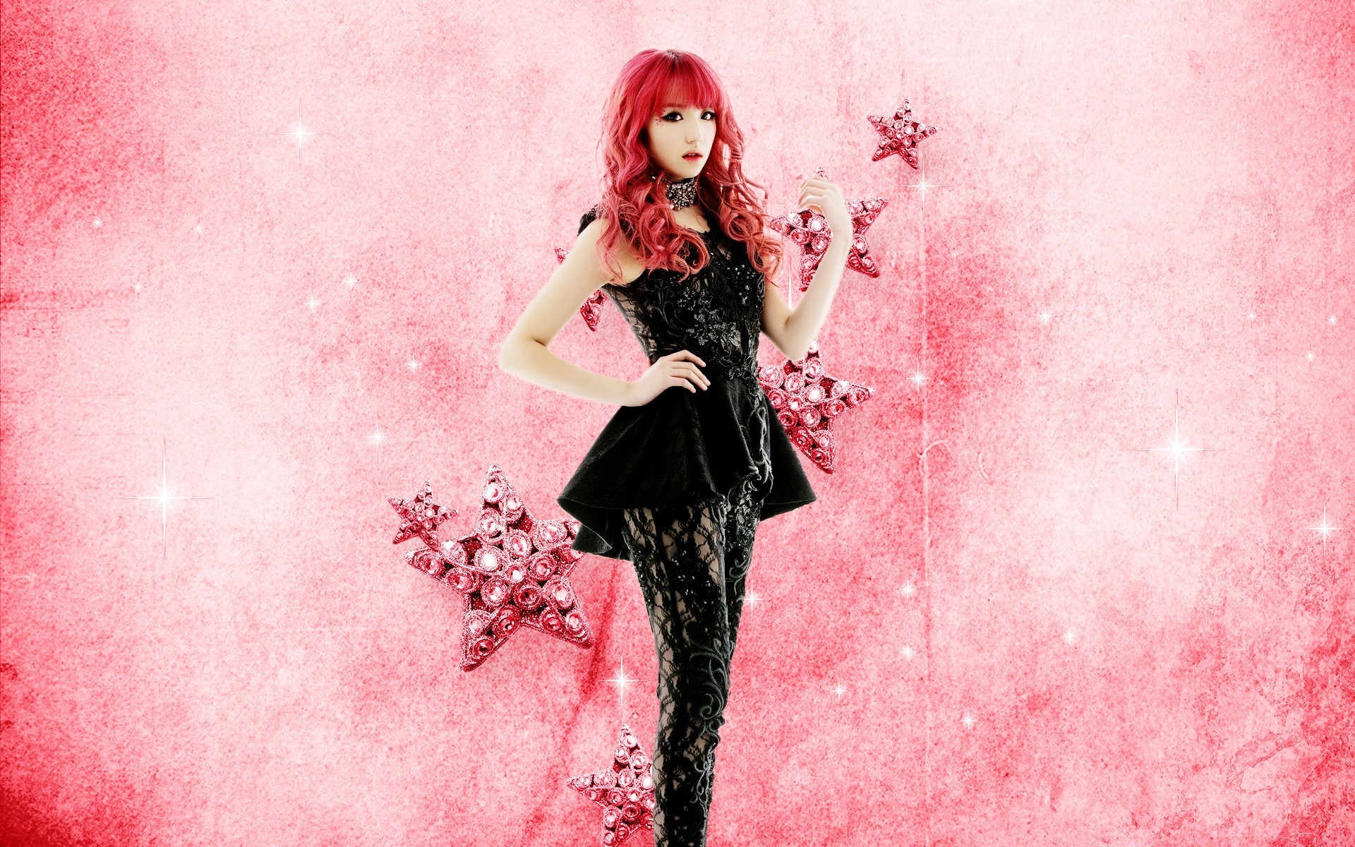 Bellezza dai capelli neri in abito rosso sul campoBellezza dai capelli neri in abito rosso sul campo