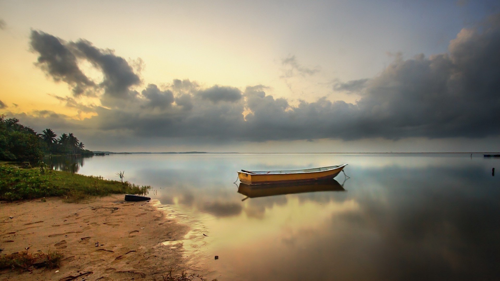 C'è molta acqua qui, ma non vedo la spiaggia; non c'è nemmeno il tramonto, forse l'alba?