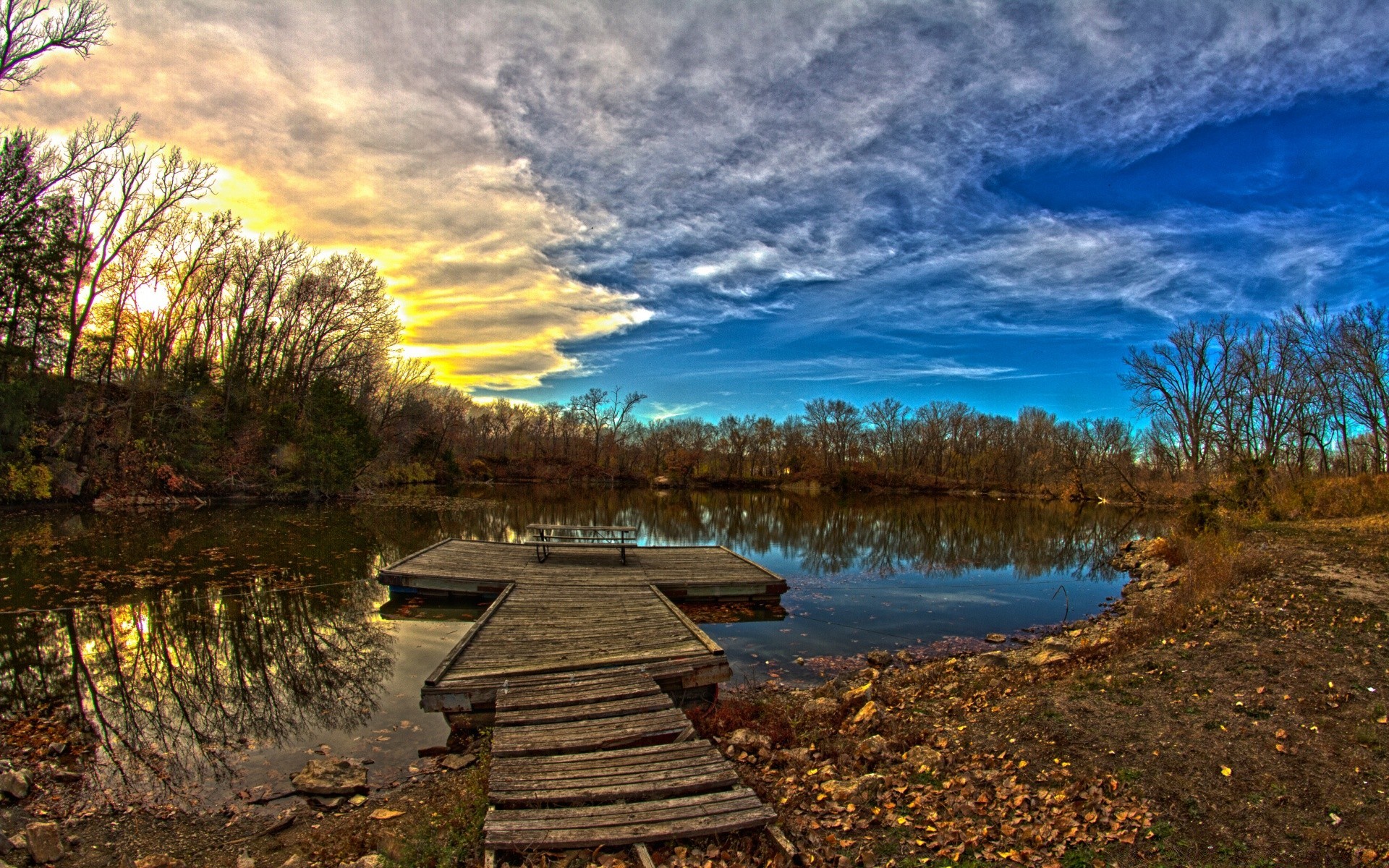 Paesaggio dell'alba sopra la superficie dell'acqua