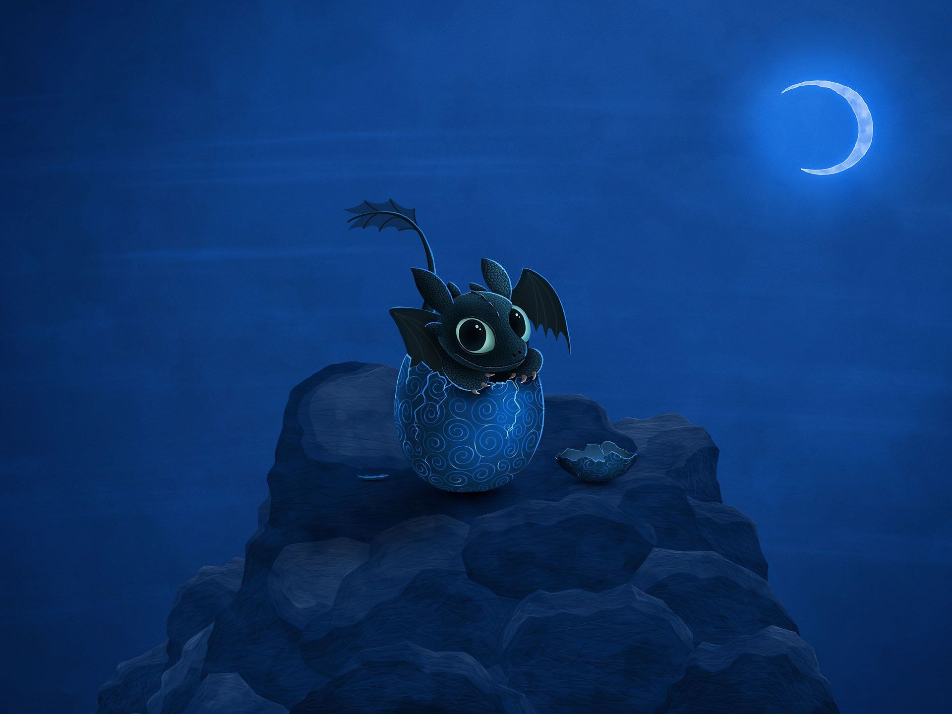 Drago notturno che si schiude da un uovo