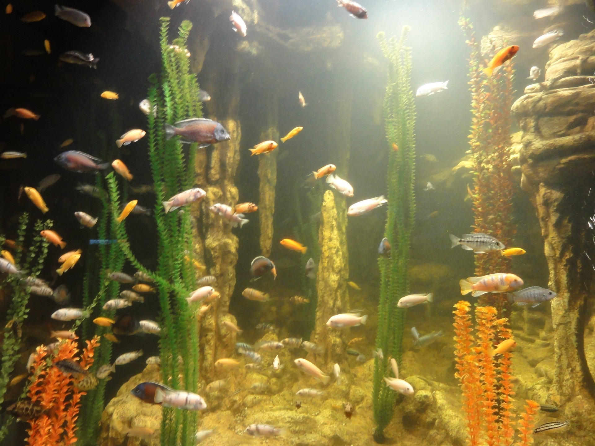 Acquario con pesci e alghe