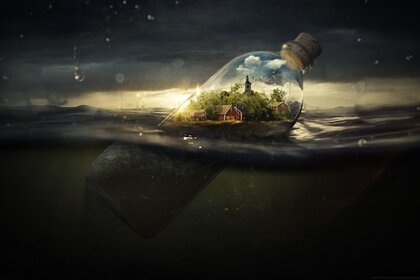 Piccolo villaggio in bottiglia in mezzo al mare