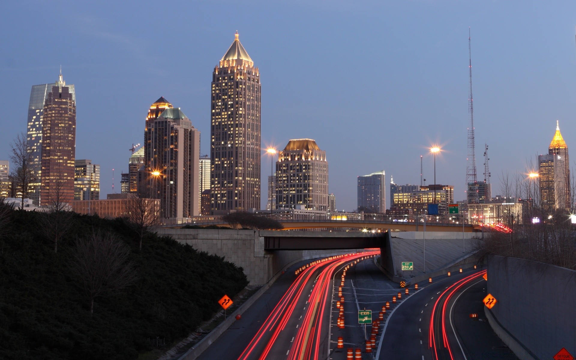 Spettacolo al neon urbano sull'autostrada