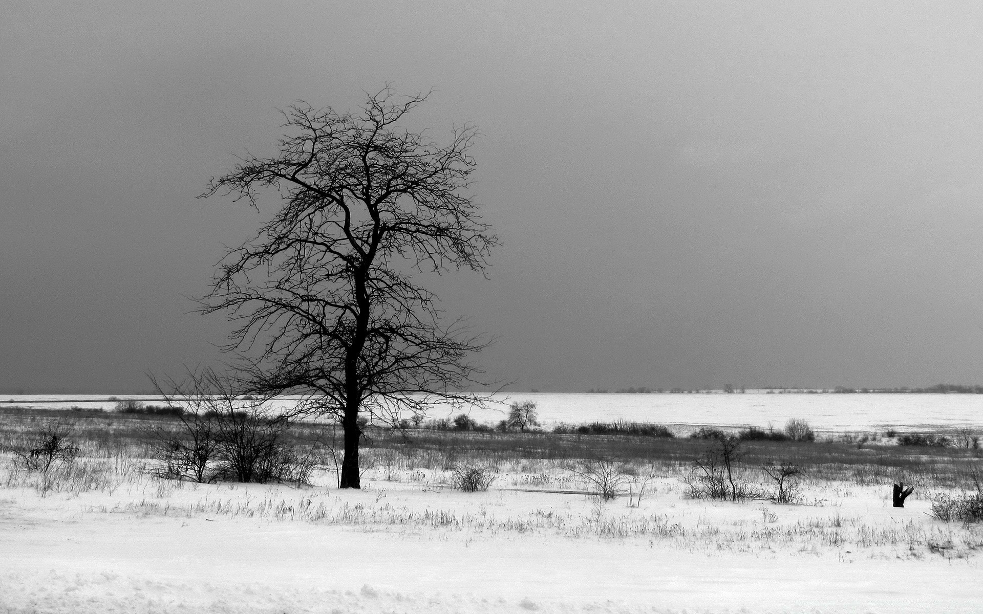 L'albero sullo sfondo del paesaggio invernale è bellissimo