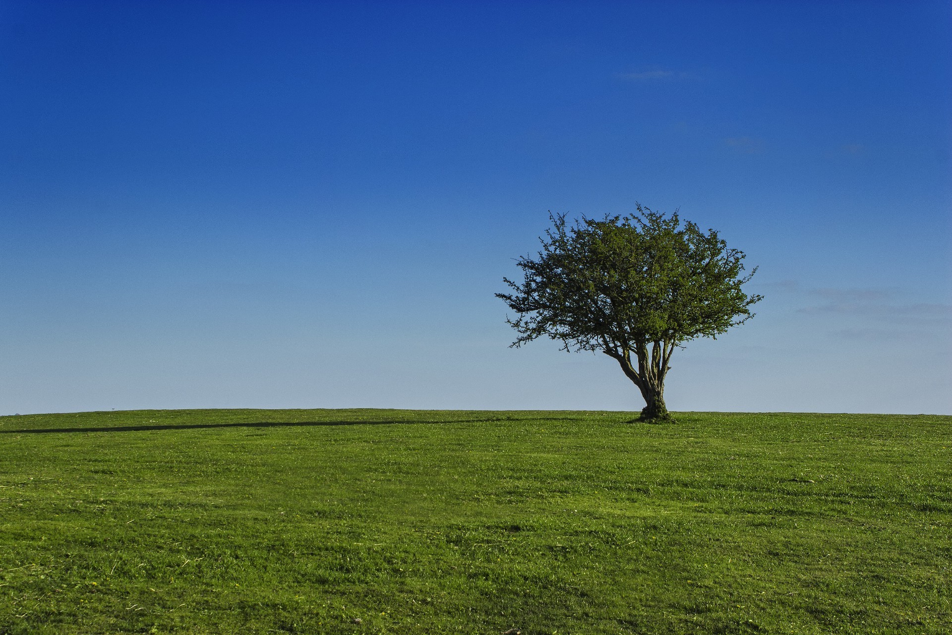 Albero verde e cielo blu sul paesaggio estivo luminoso