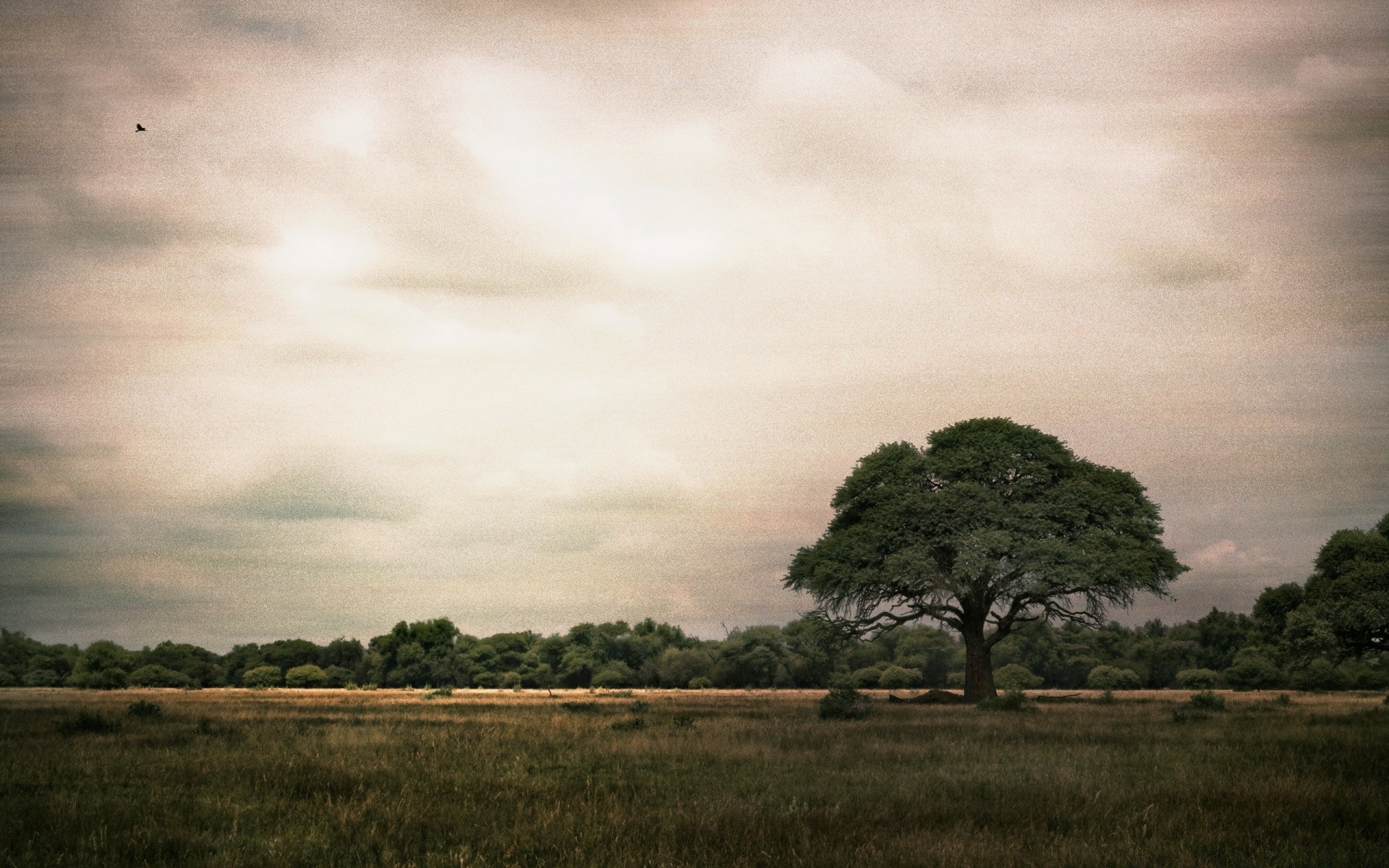 Paesaggio. Albero sullo sfondo del sole all'orizzonte