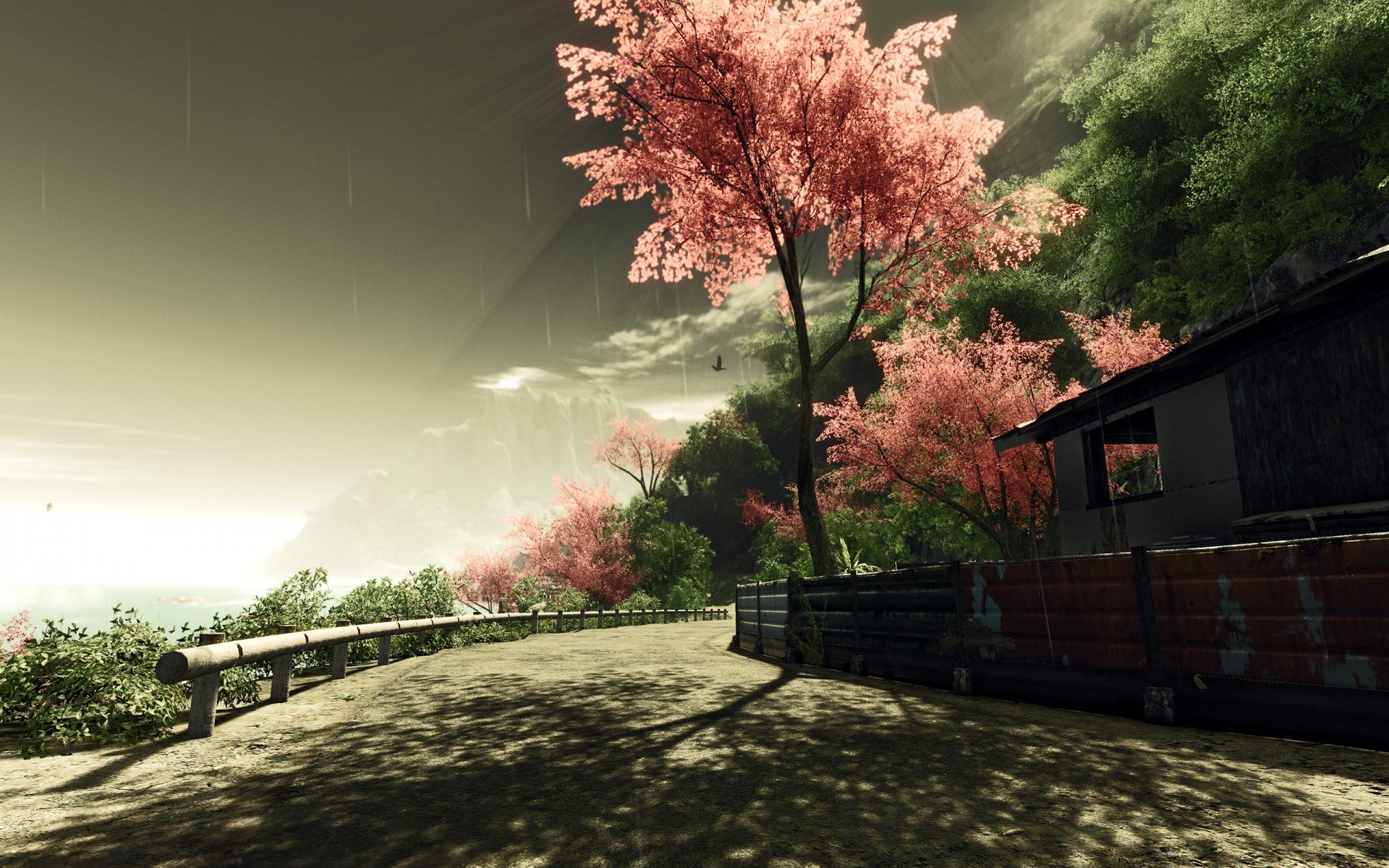Vista di un albero vicino al pavimento in una mattina nebbiosaVista di un albero vicino al pavimento in una mattina nebbiosa