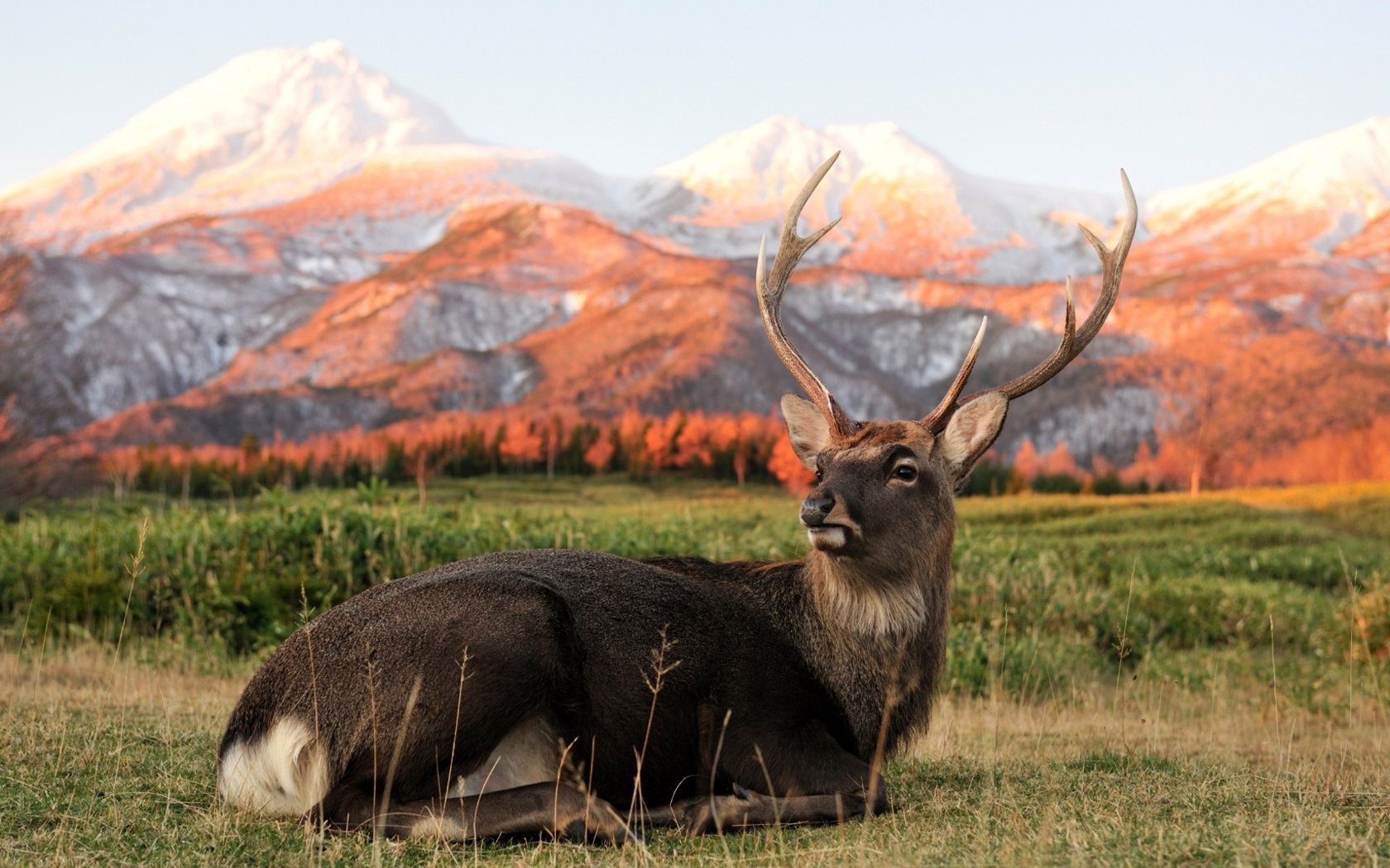 Cervo orgoglioso sullo sfondo delle montagne