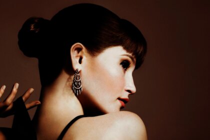 Ragazza alla sfilata di moda in un mini abito d'argento