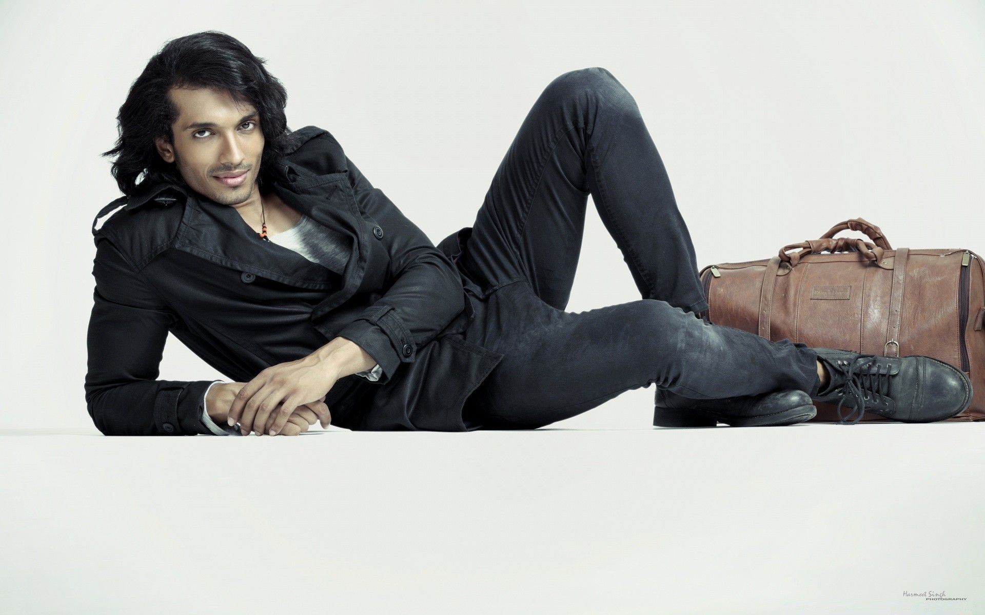Uomo adulto in posa con i capelli lunghi