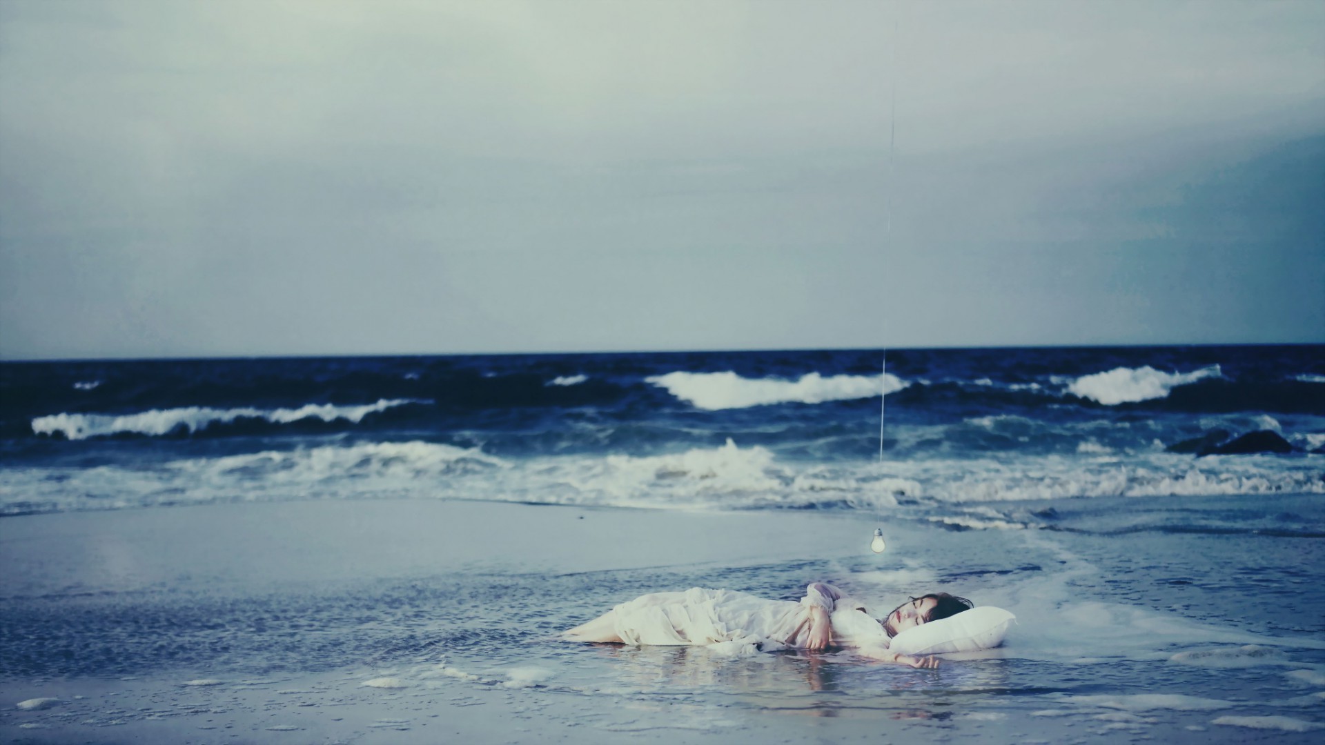 Ragazza che dorme vicino al mare