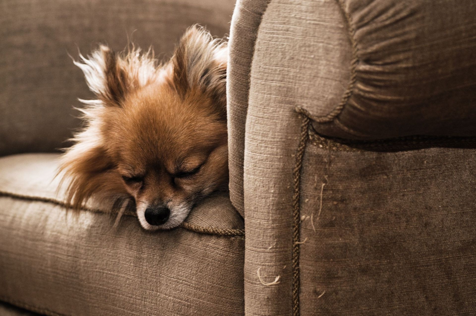 Carino cane dai Capelli rossi agganciato sul naso con gli occhiali