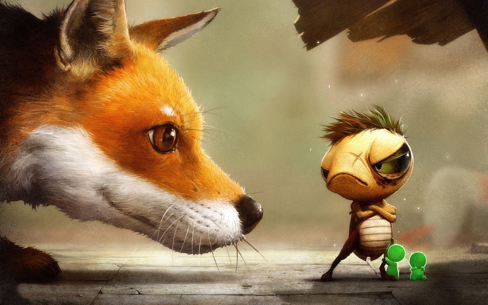Volpe e insetto in stile cartone animato