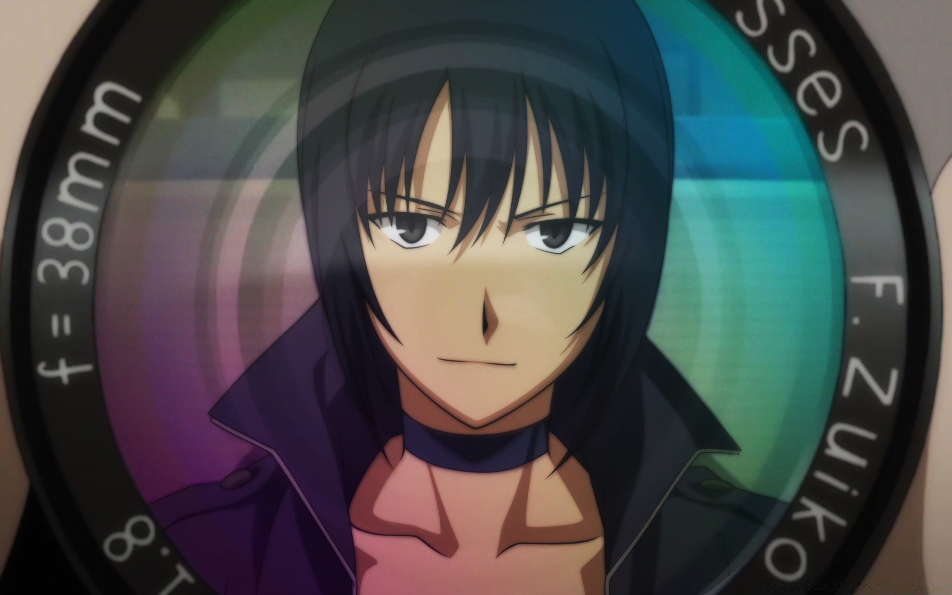 Anime giovane. primo piano del viso. frangia nera e occhi neriAnime giovane. Primo piano del viso. Frangia nera e occhi neri