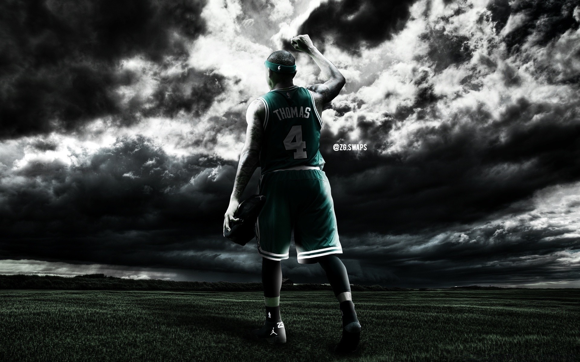 Giocatore di basket sullo sfondo di un temporale