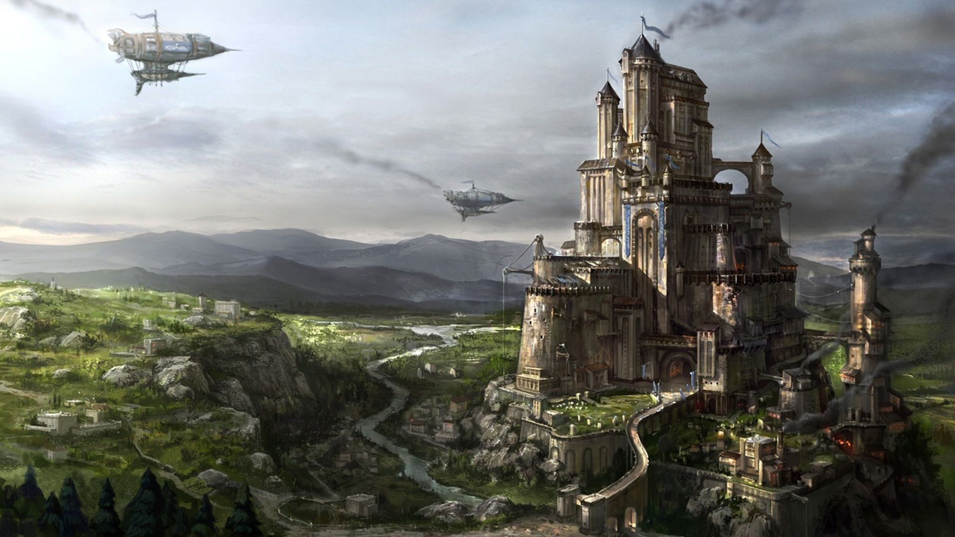 Grande opera d'arte dell'architettura ai raggi del tramonto