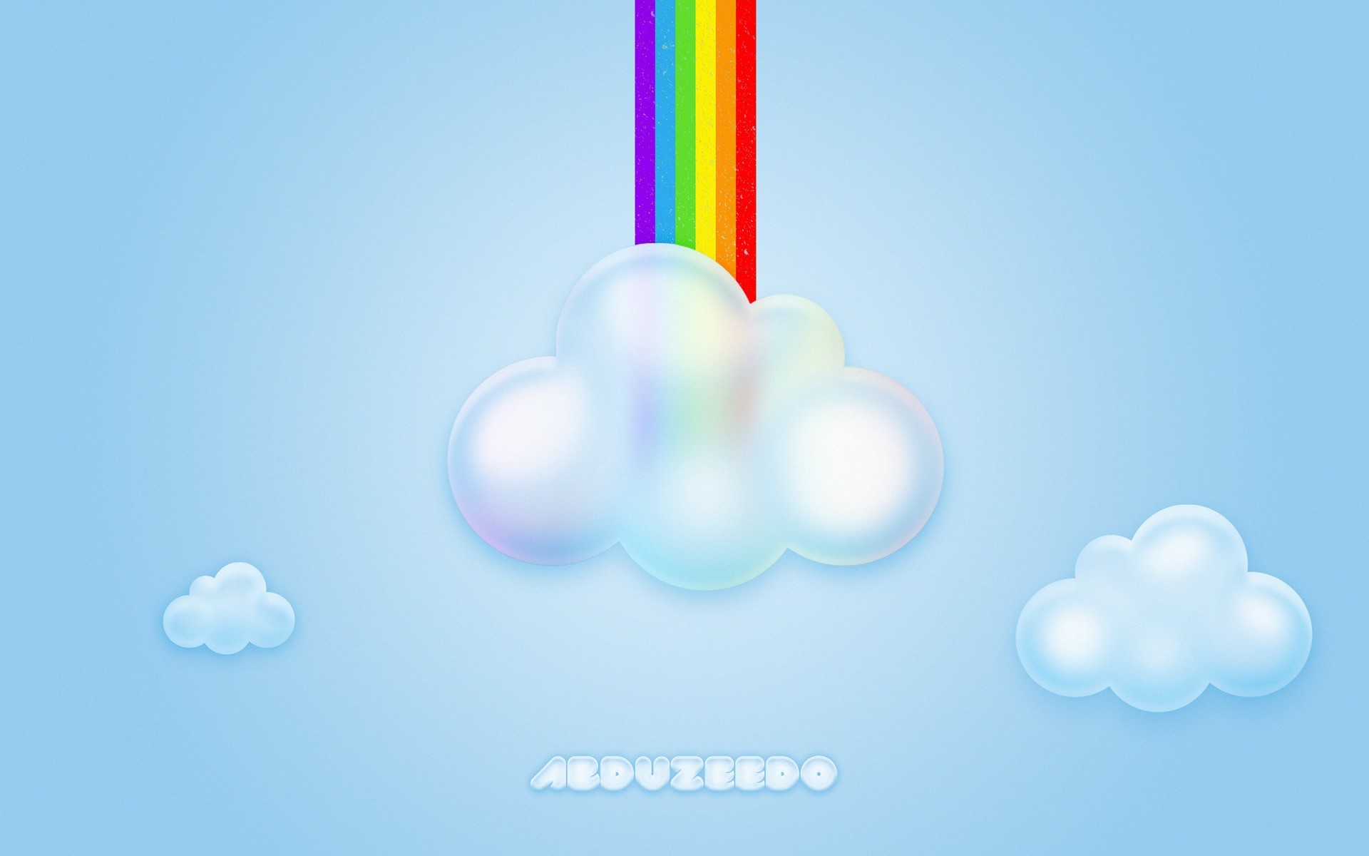 Ragazza sullo sfondo di un arcobaleno Fantasy E Cielo