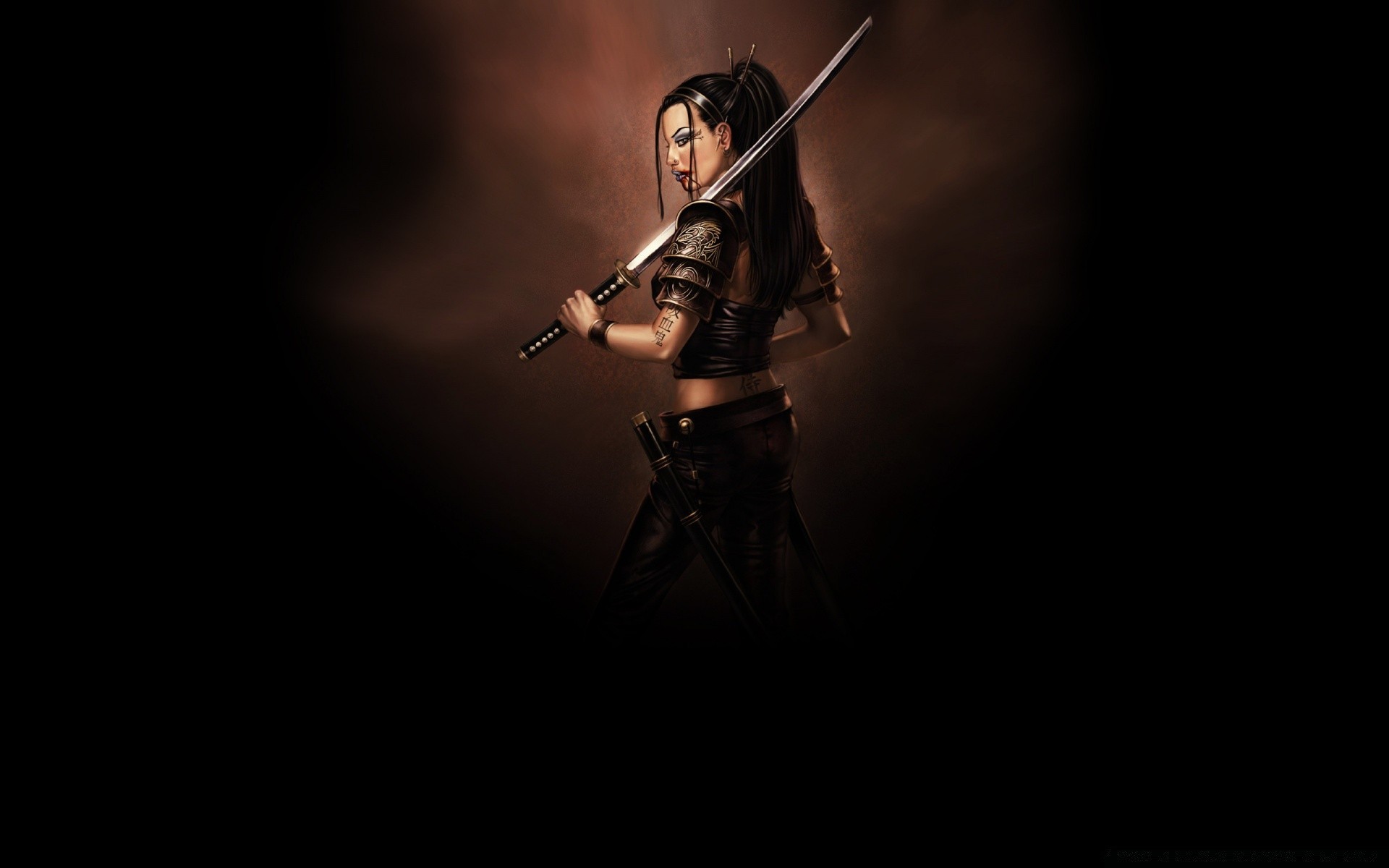 Ragazza voltata con la spada in mano