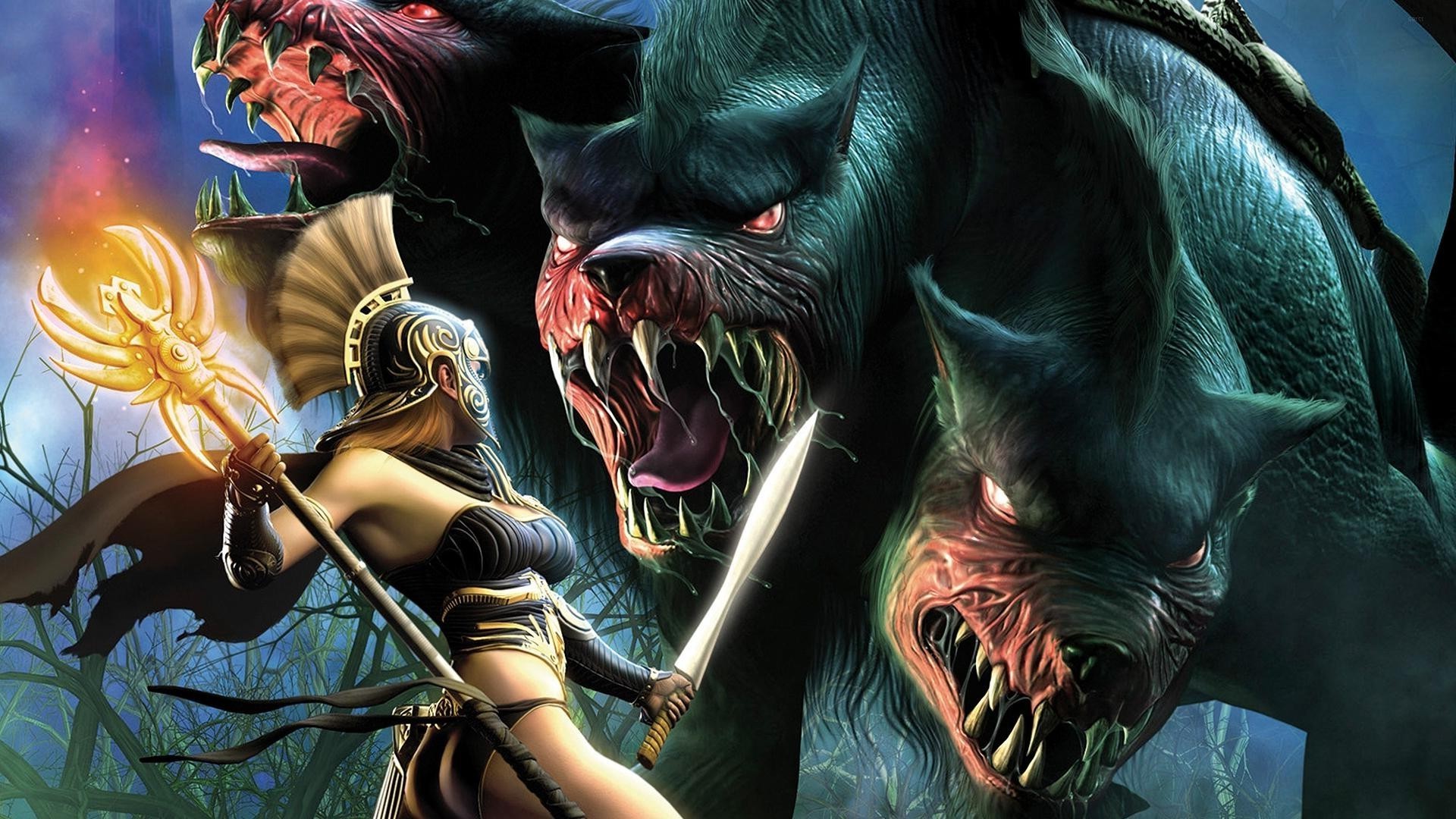 Disegno grafico di Valkyrie. Cane Baskerville a tre teste