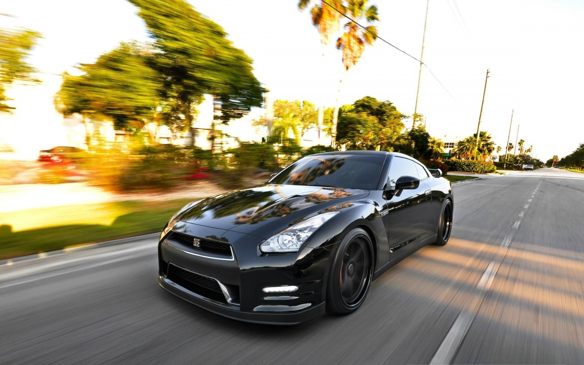 Auto nera veloce sull'asfalto
