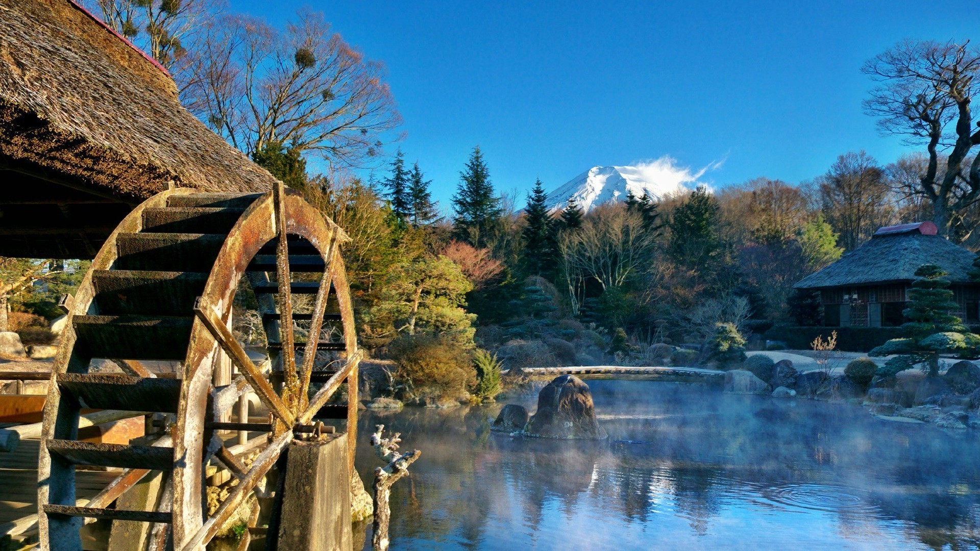 Fotopayzage raffigurante uno stagno trasparente tra le pietre sullo sfondo di un'alta foresta di conifere e montagneFotopayzage raffigurante uno stagno trasparente tra le pietre sullo sfondo di un'Alta Foresta di conifere e montagne