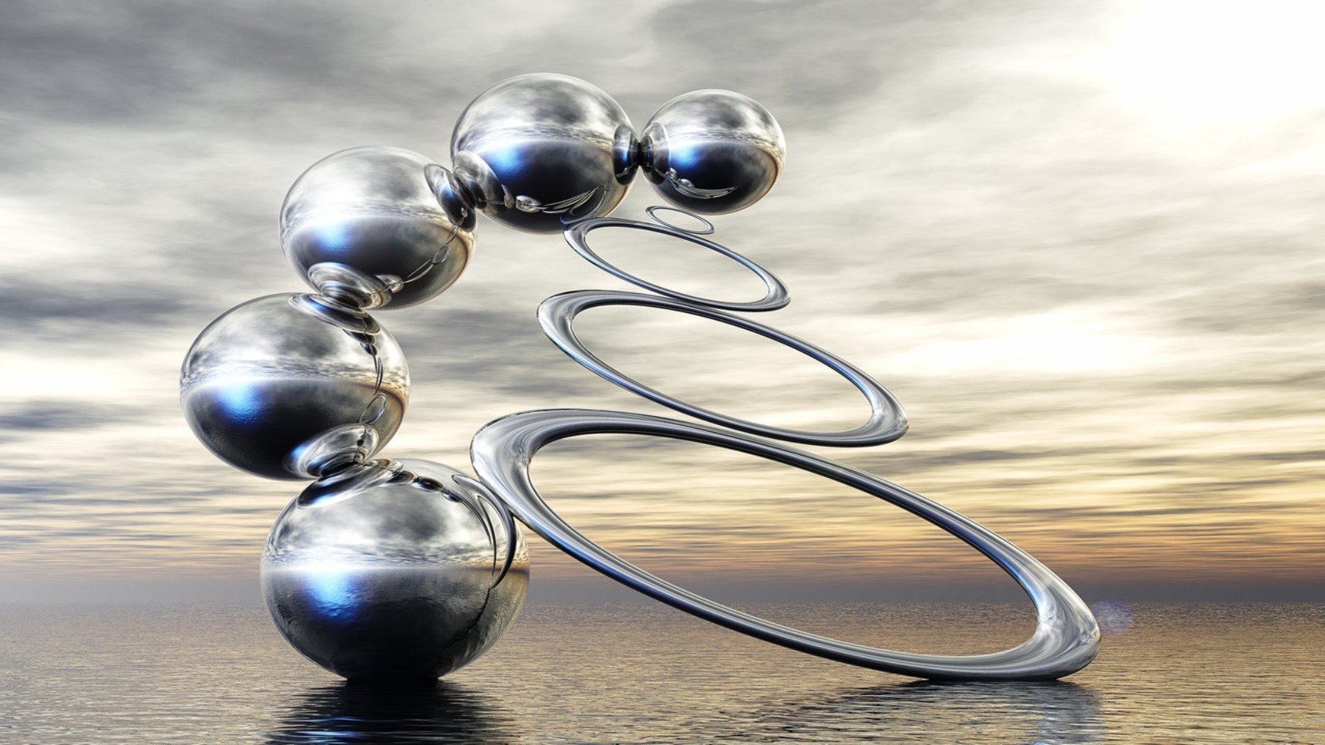 Sfere argentee su uno sfondo di cielo grigio