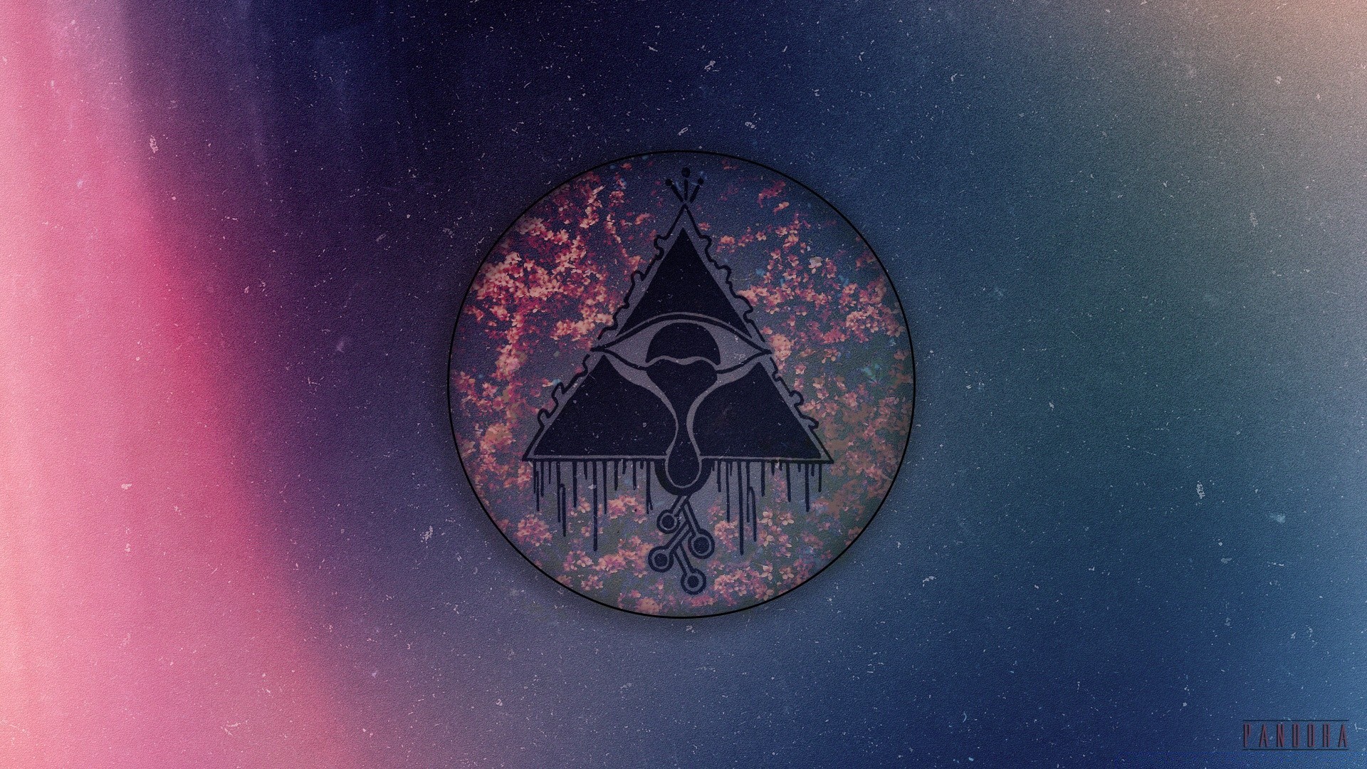 Emblema in bianco e nero in un cerchio su uno sfondo di stelle