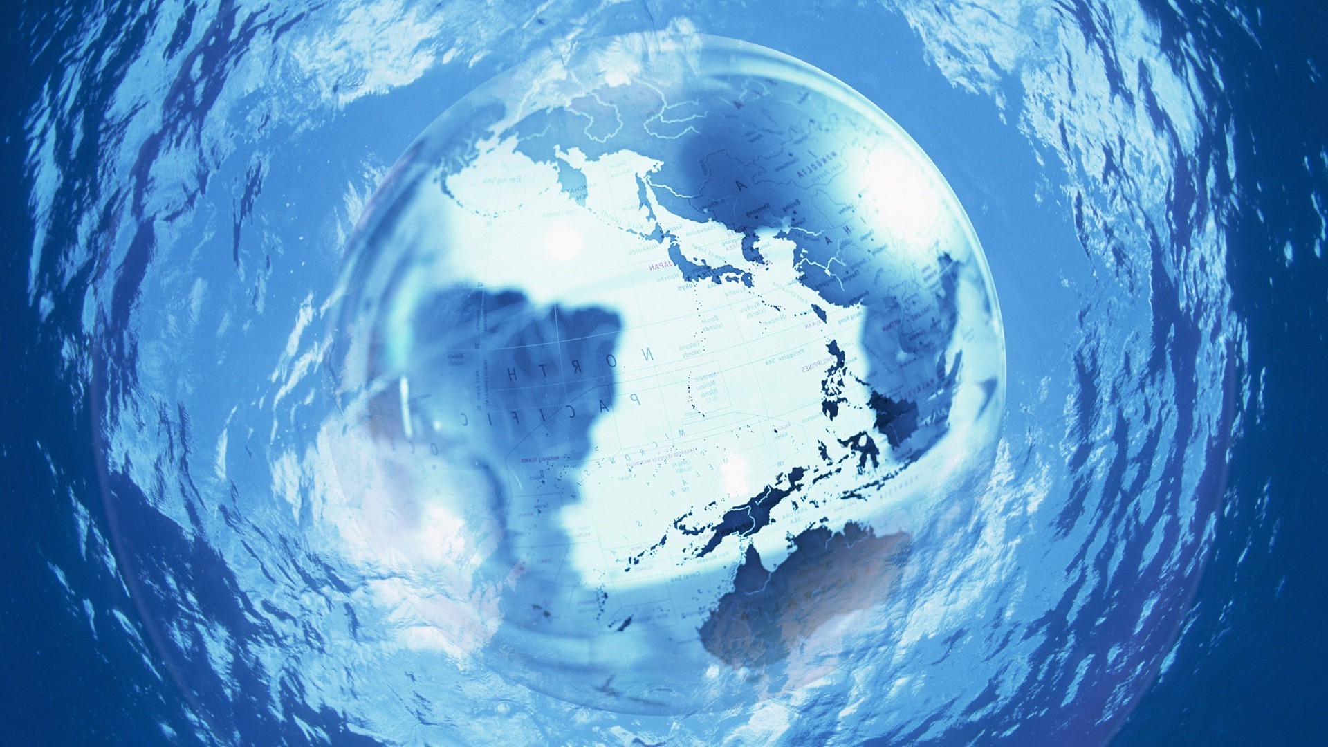Pianeta nei toni del blu sullo sfondo dell'acqua