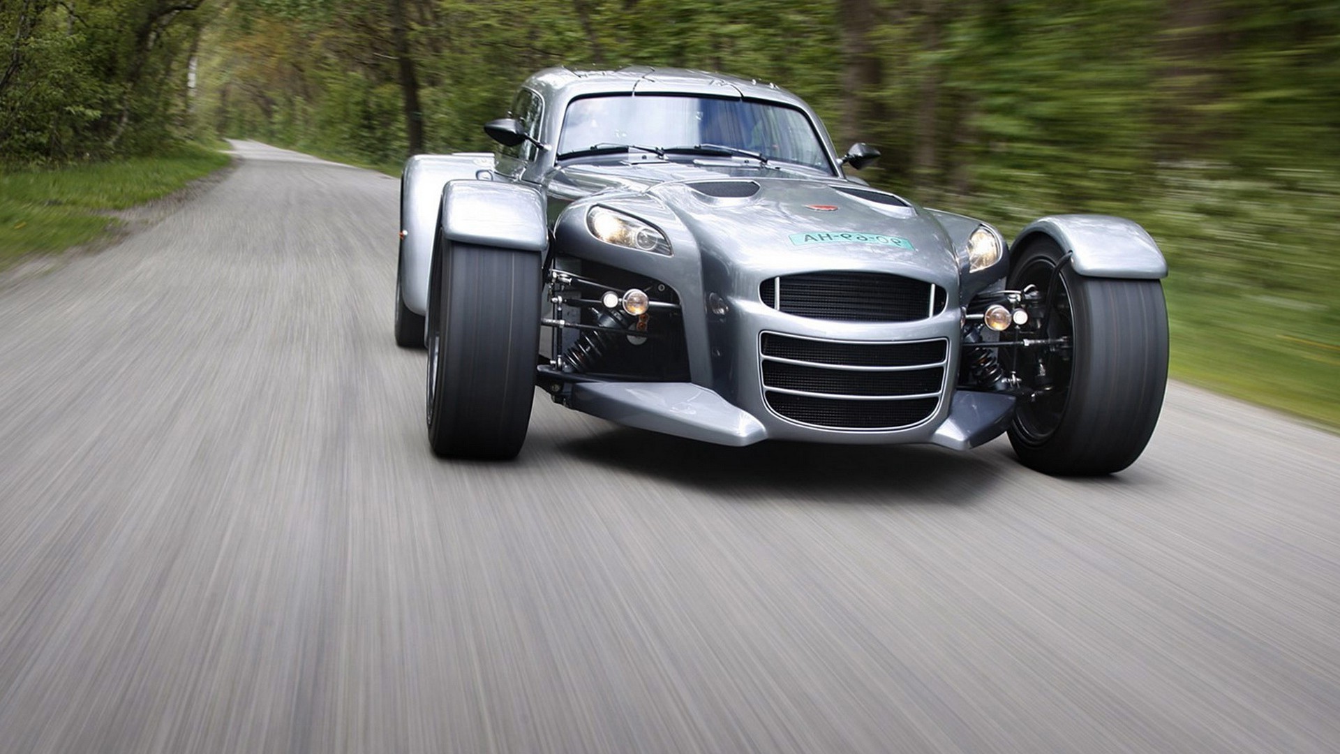 Auto sportiva Bugatti blu su uno sfondo di palme
