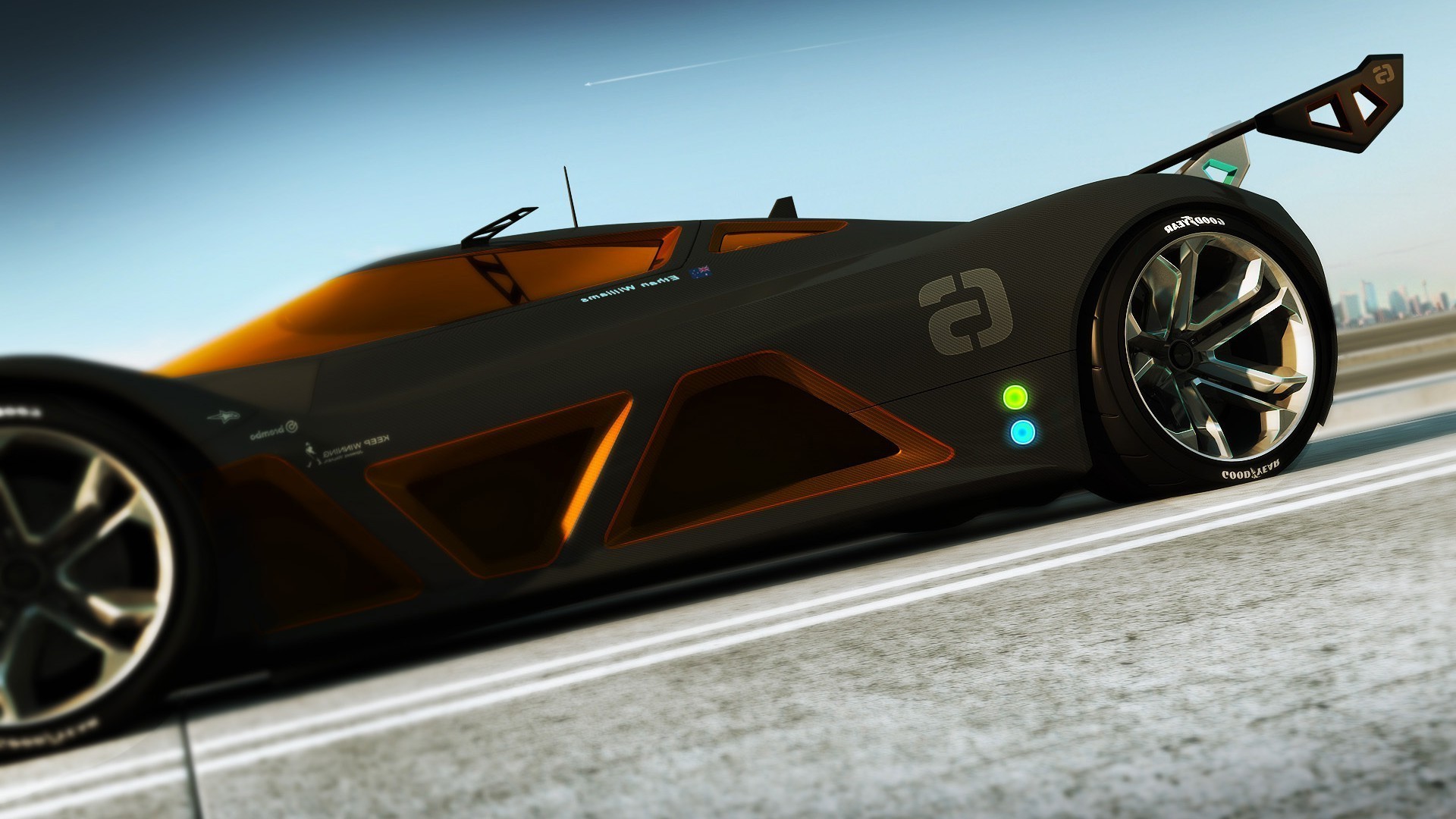 Abstract del gioco. Le auto sportive devono guidare attraverso il fuoco