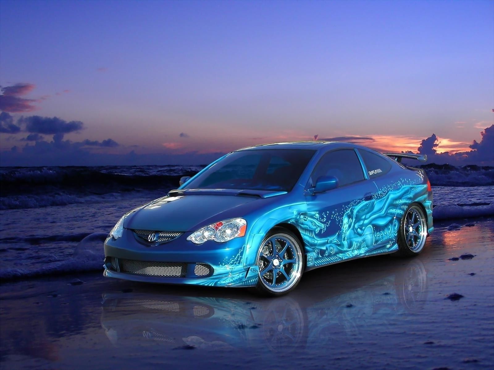 Un'auto bianca sportiva si riflette in una pozzanghera