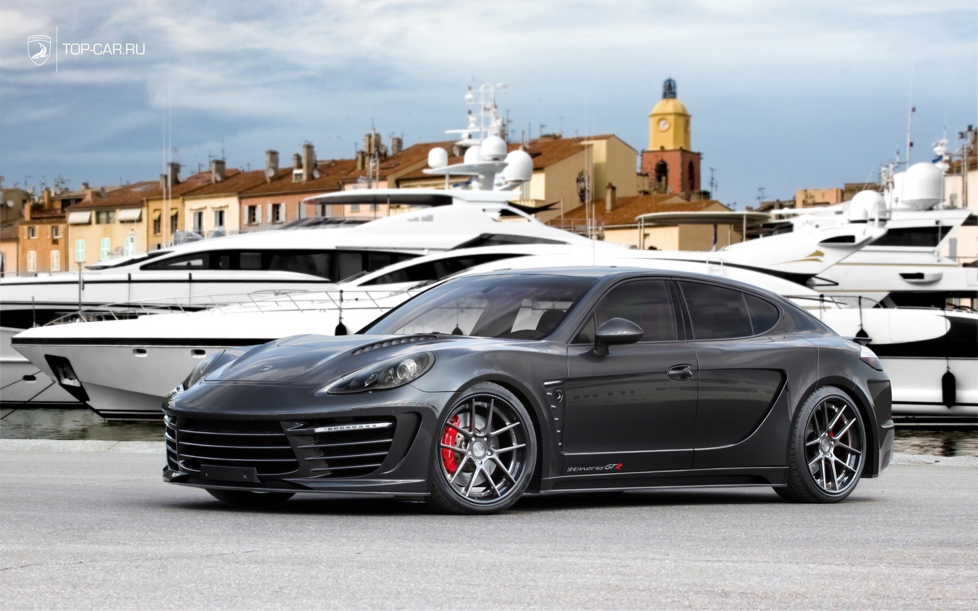 Bella auto sullo sfondo del porto