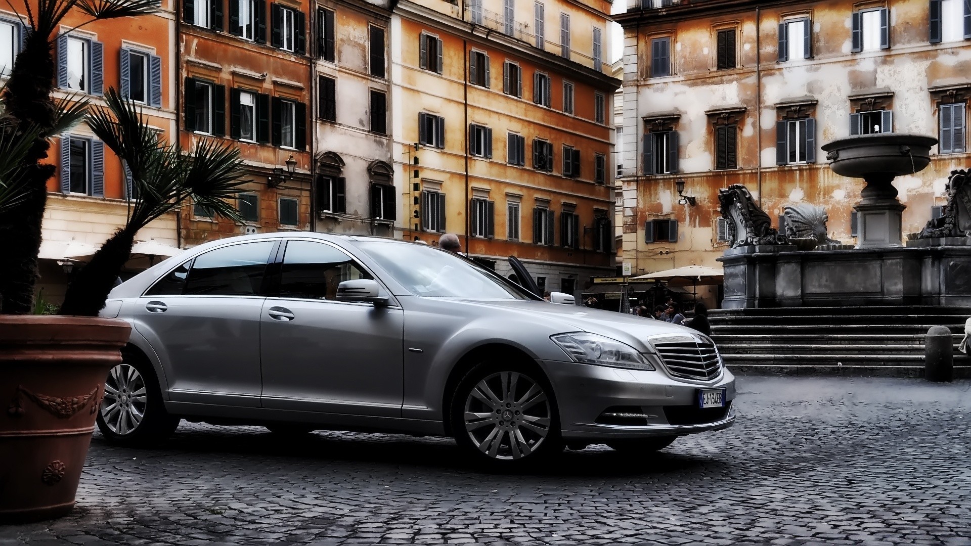 Auto nel cortile di una casa d'epoca