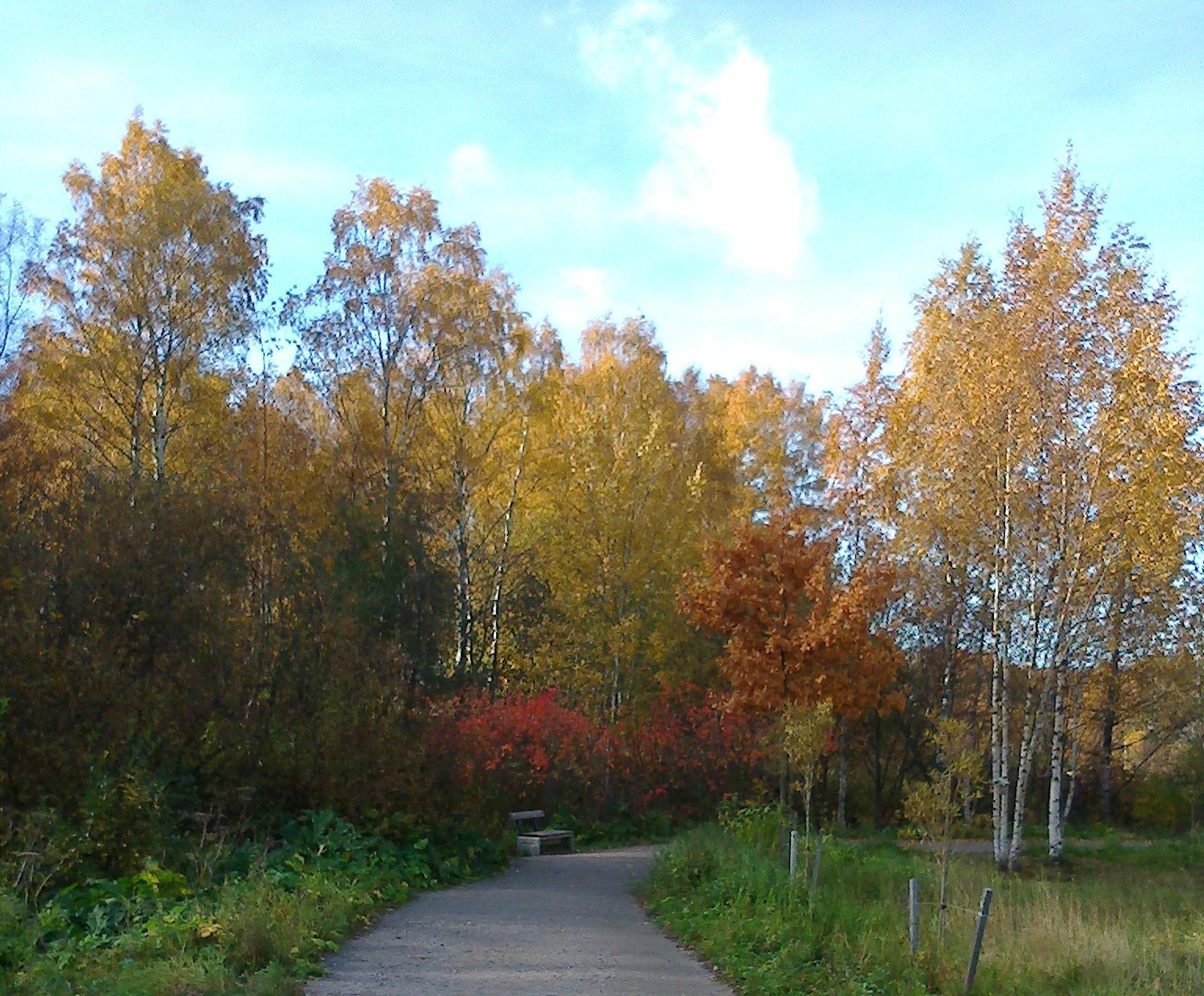 Foresta autunnale. Alberi vestiti abiti luminosi