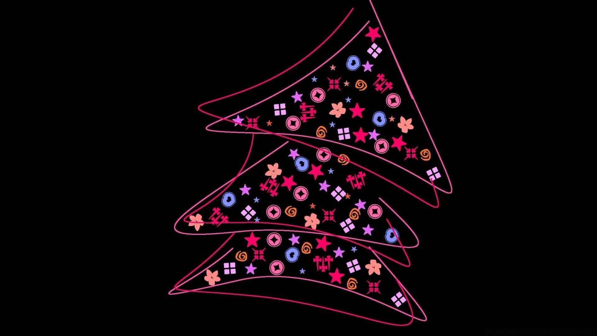 Palline colorate di Natale su foglie verdi tra linee colorate