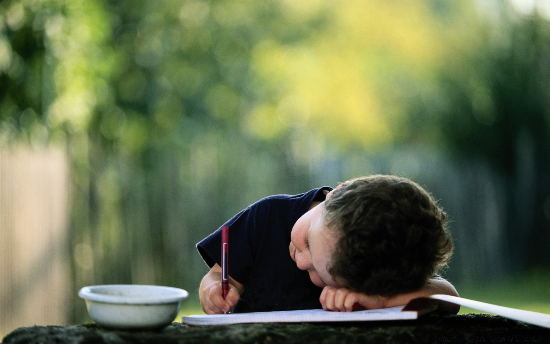 Bambino che disegna all'aperto