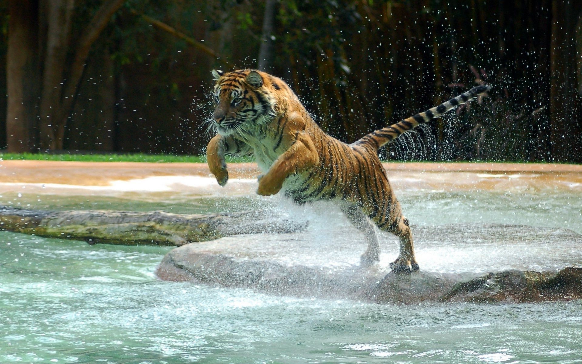 Fauna selvatica con una tigre che salta sull'acqua