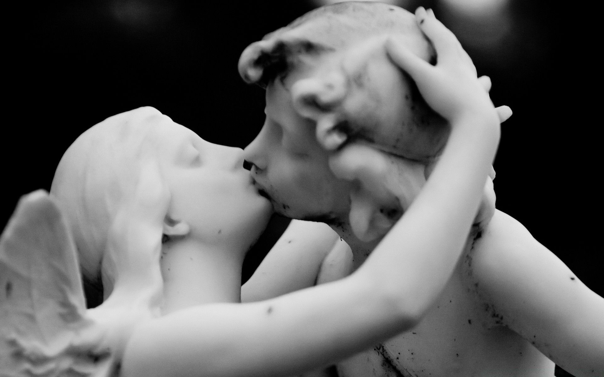 Bacio. immagine monocromatica di un frammento di sculturaBacio. Immagine monocromatica di un frammento di scultura