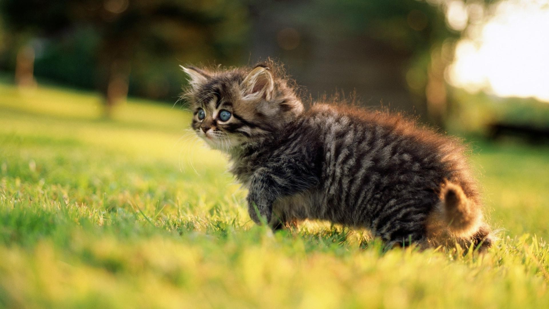 Piccolo gattino sull'erba verde