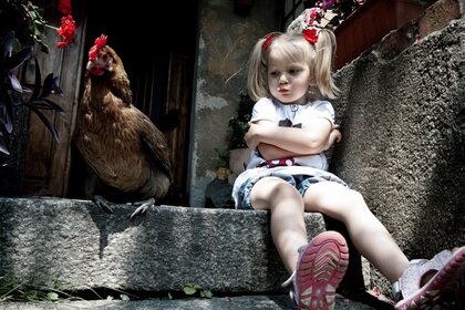 Ragazza in un pene davanti allo specchio su una sediaRagazza in un pene davanti allo specchio su una sedia