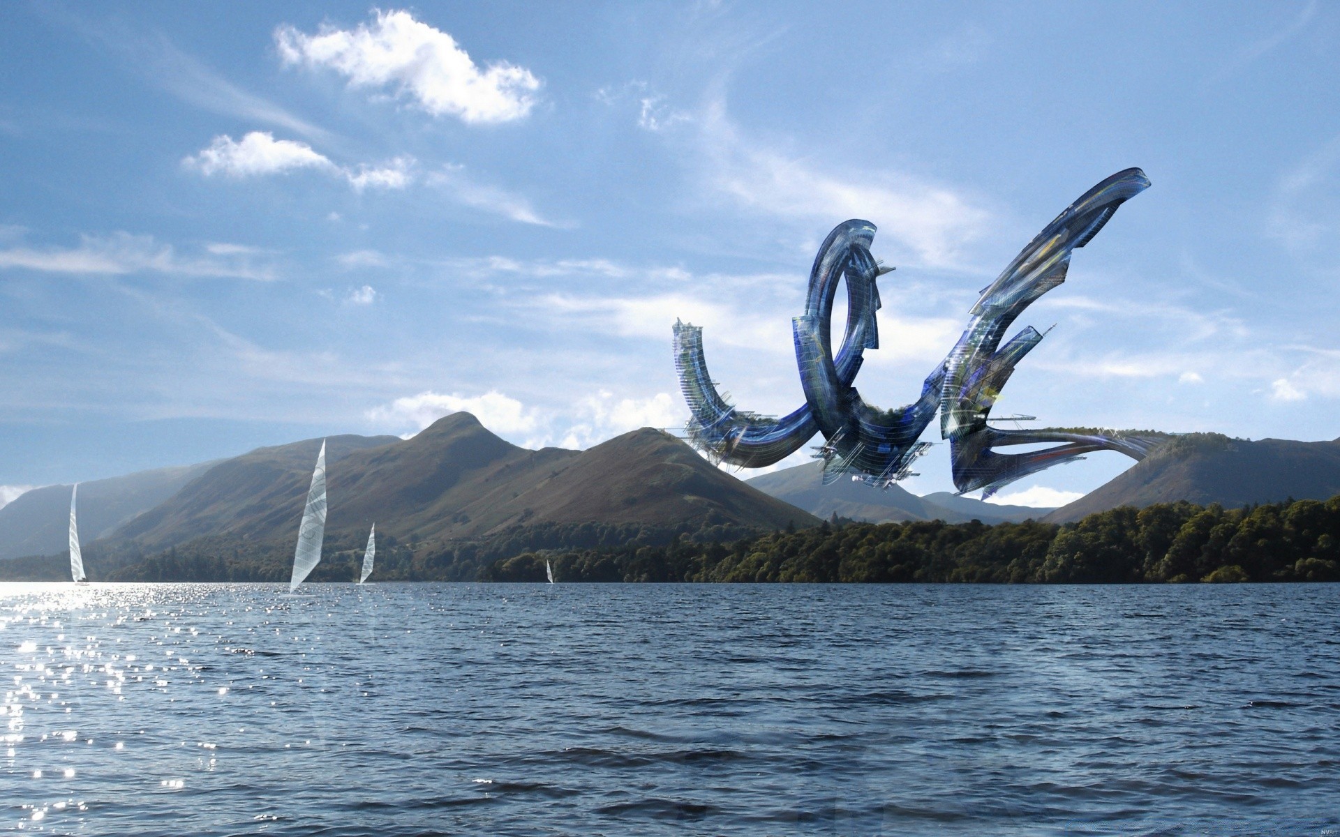 Sullo sfondo del cielo sopra l'acqua uomo sulla lavagna