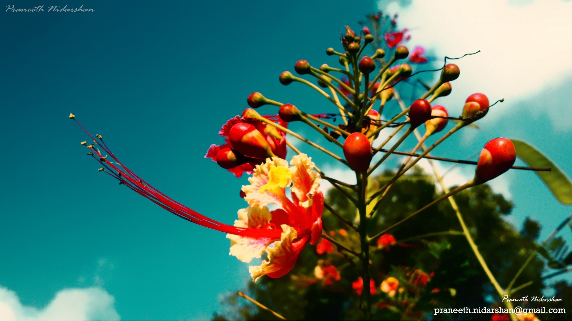 Sullo sfondo del cielo un ramo con bacche e fiori