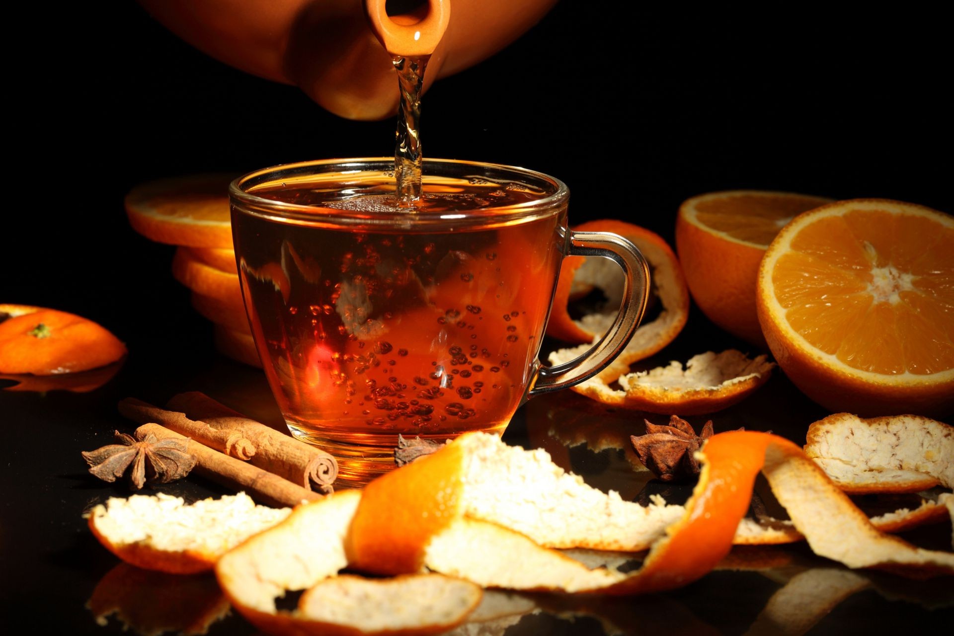 Tazza buccia bevanda teiera anice arance