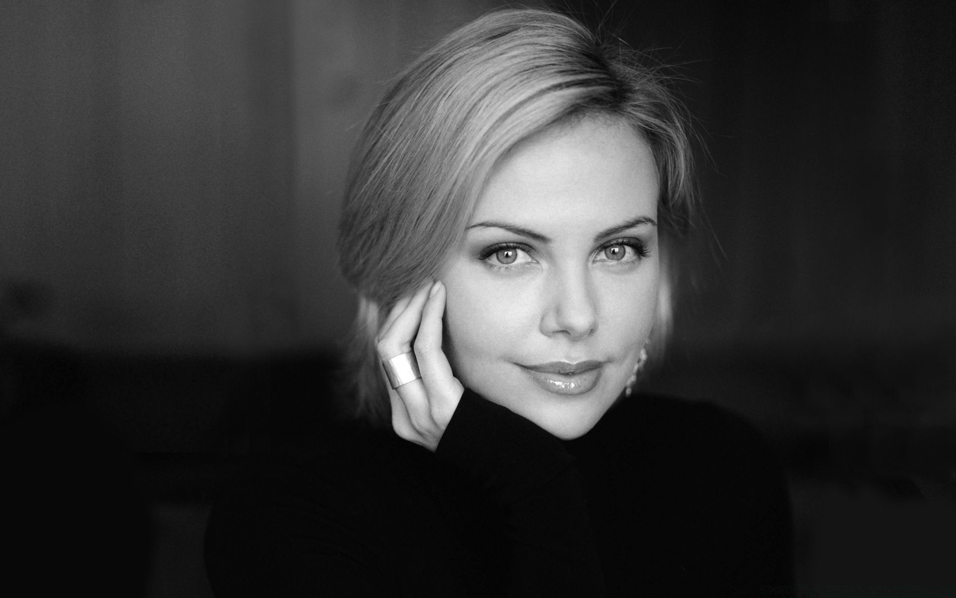 Ritratto in bianco e nero dell'attrice con i capelli corti