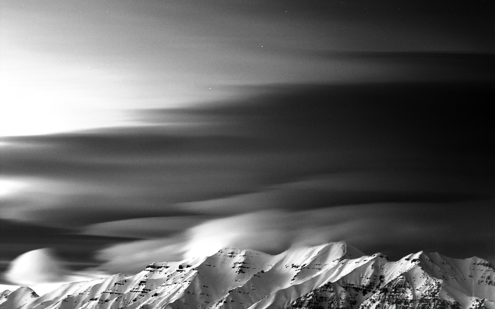 Montagne invernali su sfondo bianco e nero