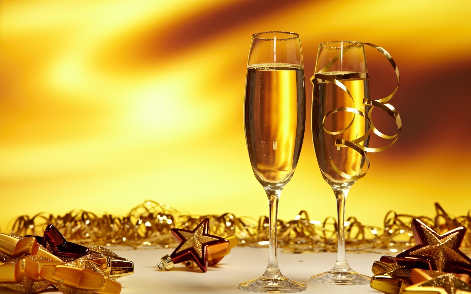 Scintillanti stelle filanti e due bicchieri di champagne