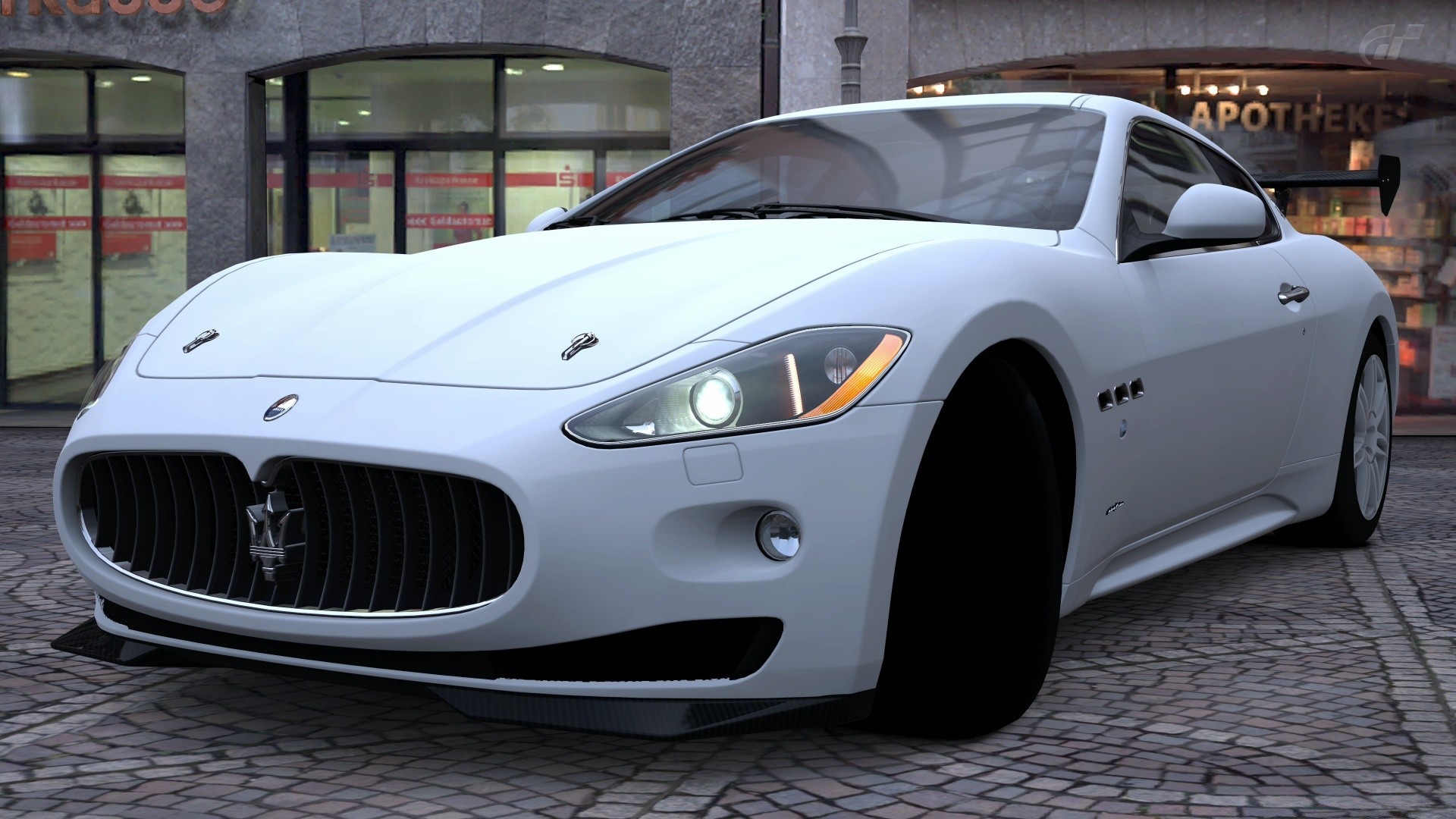 Un'auto sportiva brillante sulla strada vicino a un piccolo edificio