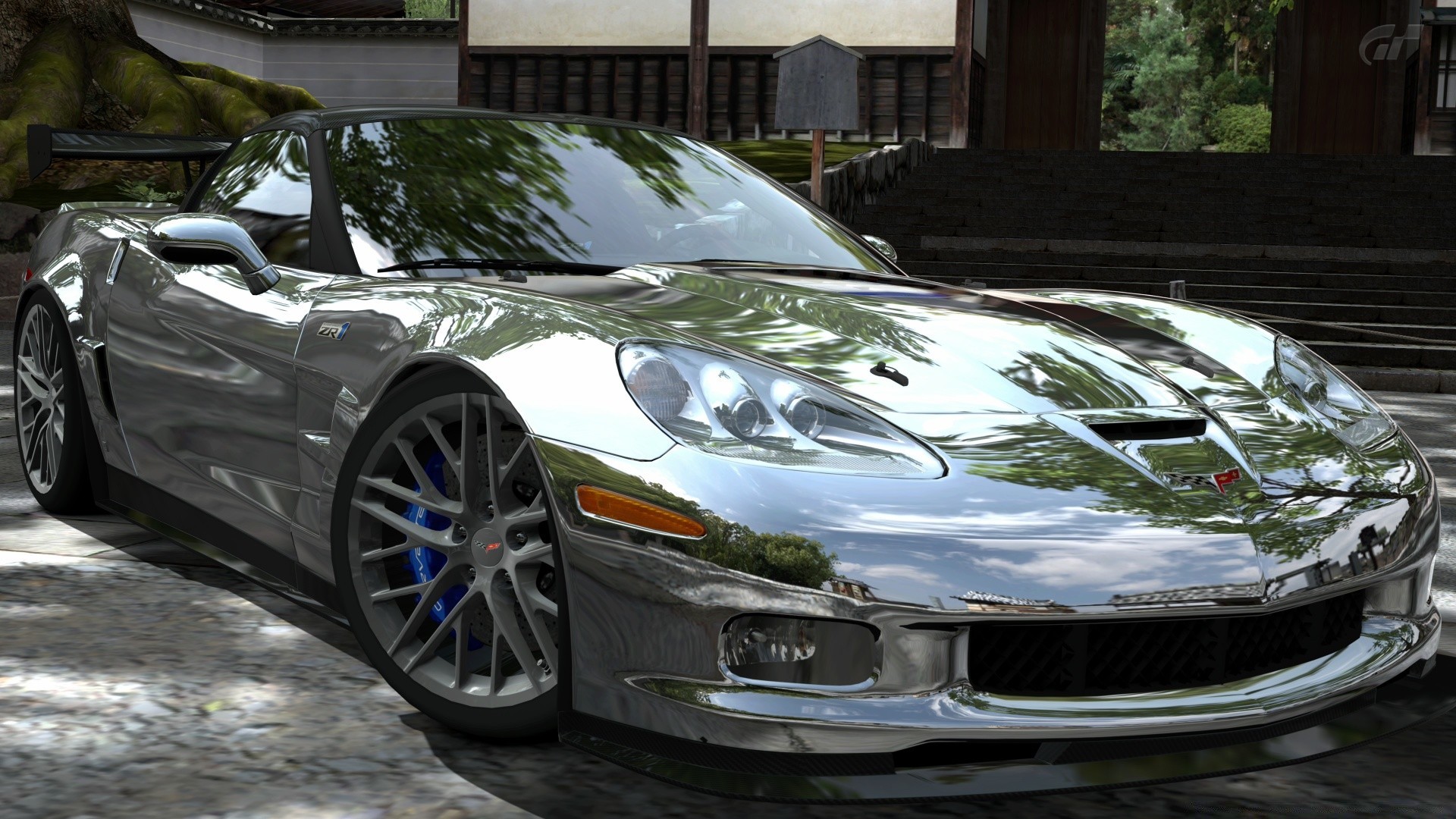 Un'auto sportiva brillante sulla strada vicino a un piccolo edificioUn'auto sportiva brillante sulla strada vicino a un piccolo edificio