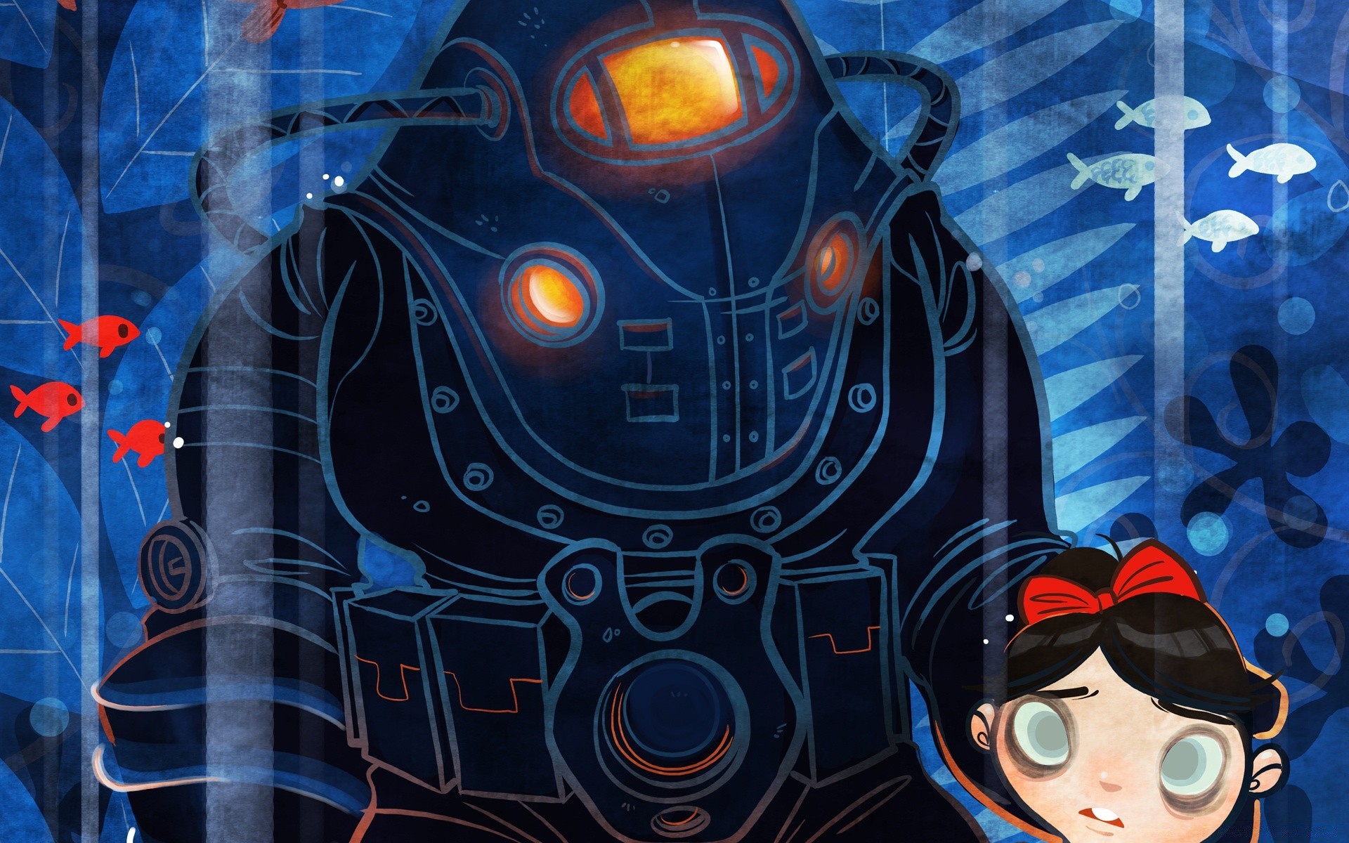 Una creatura in tuta spaziale tiene un ragazzo tra le braccia
